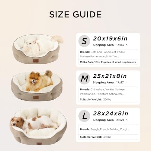 Bedsure Dog Beds for Small Dogs – Round Cat Beds for Indoor Cats, Washable Pet Bed for Puppy and Kitten with Slip-Resistant Bottom, 20 Inches, Camel